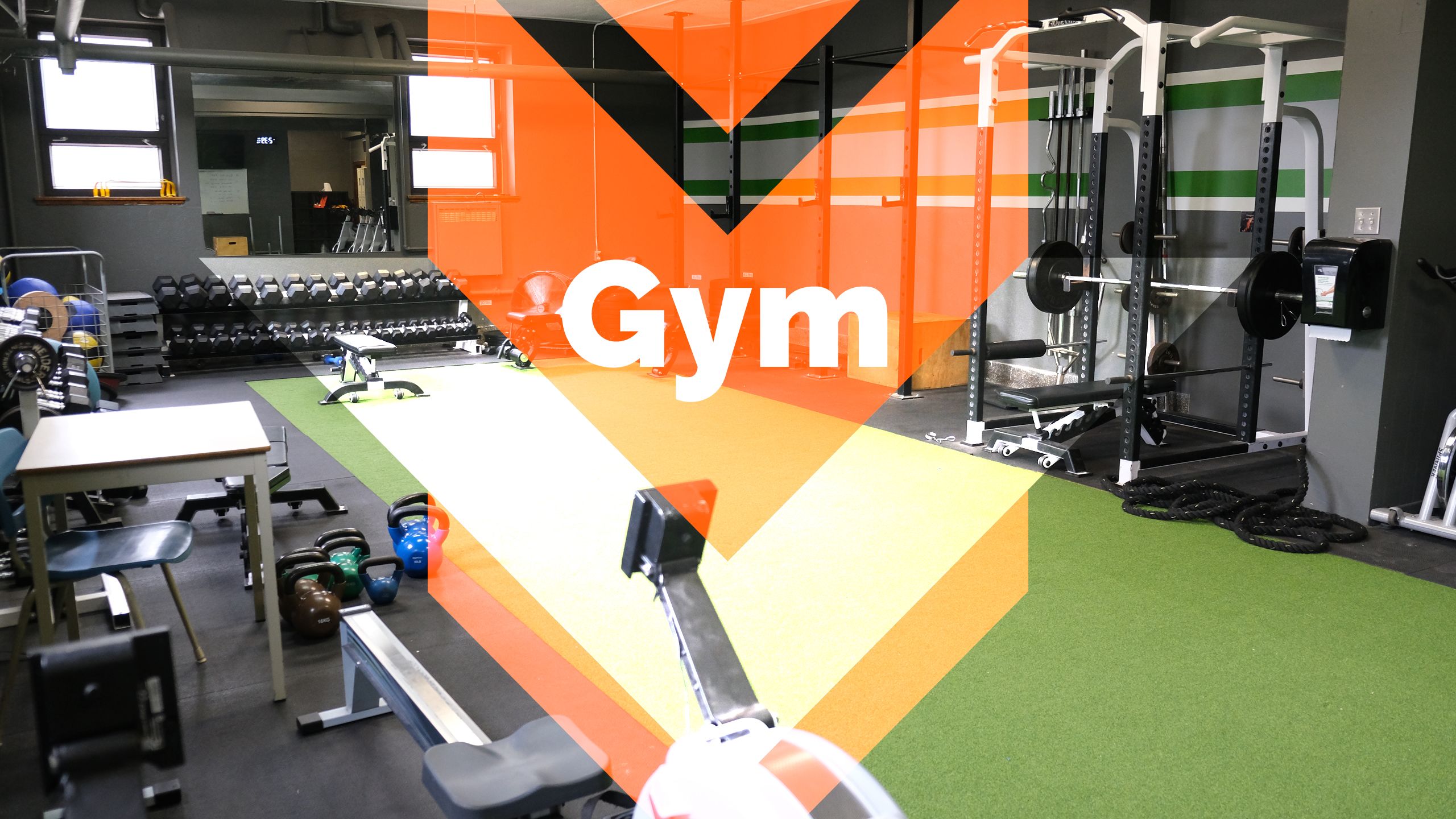 Tous les espaces disponibles ont été pensés et utilisés. Un gym a été aménagé et tous les élèves, les membres du personnel ou ceux des équipes sportives peuvent venir s’y entraîner.