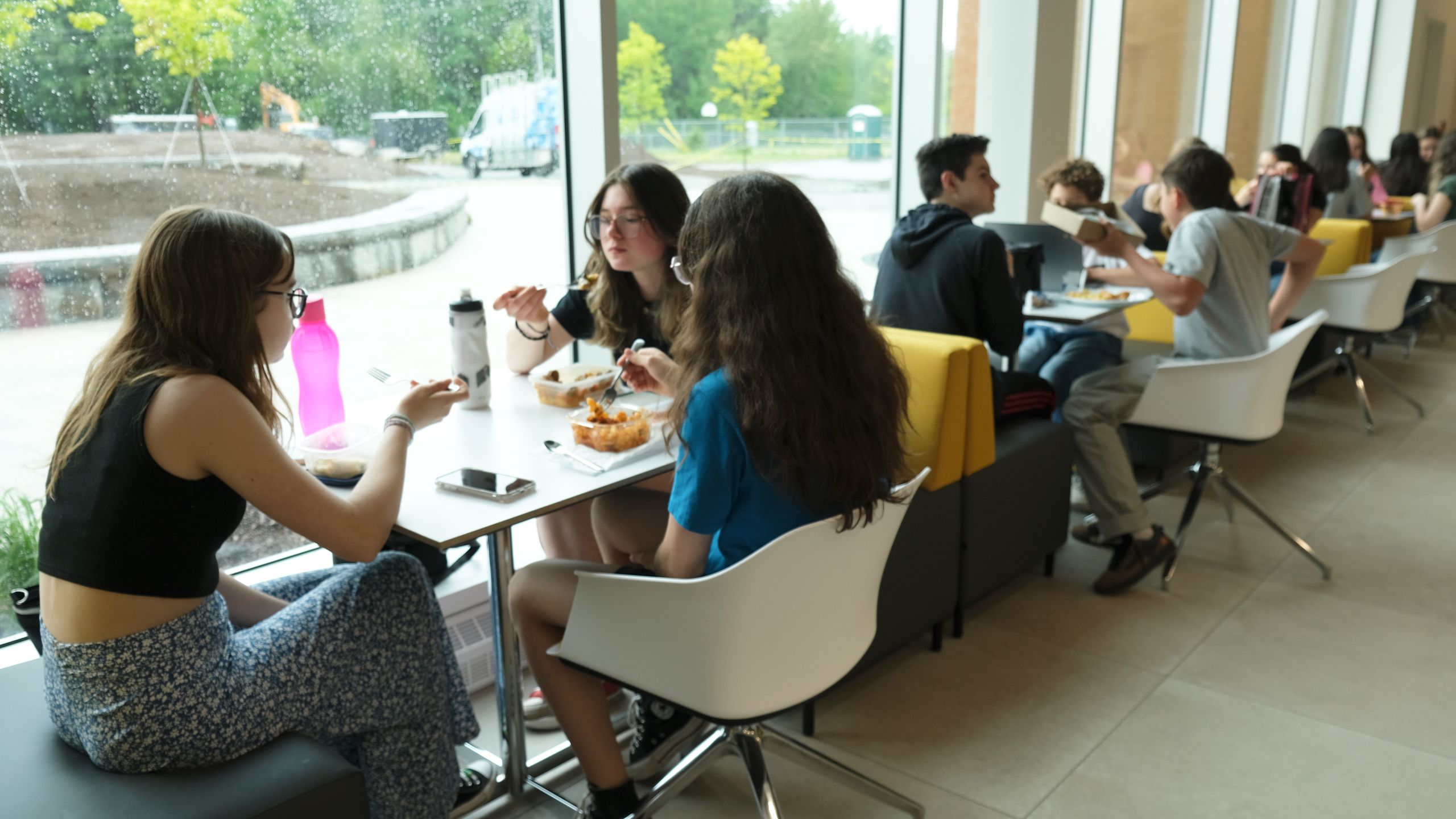 Vous avez déjà vu une école secondaire qui offre à ses élèves une terrasse sur le toit? Eh bien, c’est maintenant chose faite au Verbe! Quelques tables aménagées à l’extérieur permettent aux jeunes de se réunir pour manger, discuter, étudier… Même les profs peuvent y donner leurs cours! Encore une fois, la convivialité est au cœur de l’espace. Se voulant d’abord et avant tout un milieu de vie épanouissant et stimulant, l’École secondaire du Verbe Divin ne recule devant rien pour fournir à ses élèves tout ce dont ils ont besoin pour évoluer au plan académique comme au plan personnel et social.